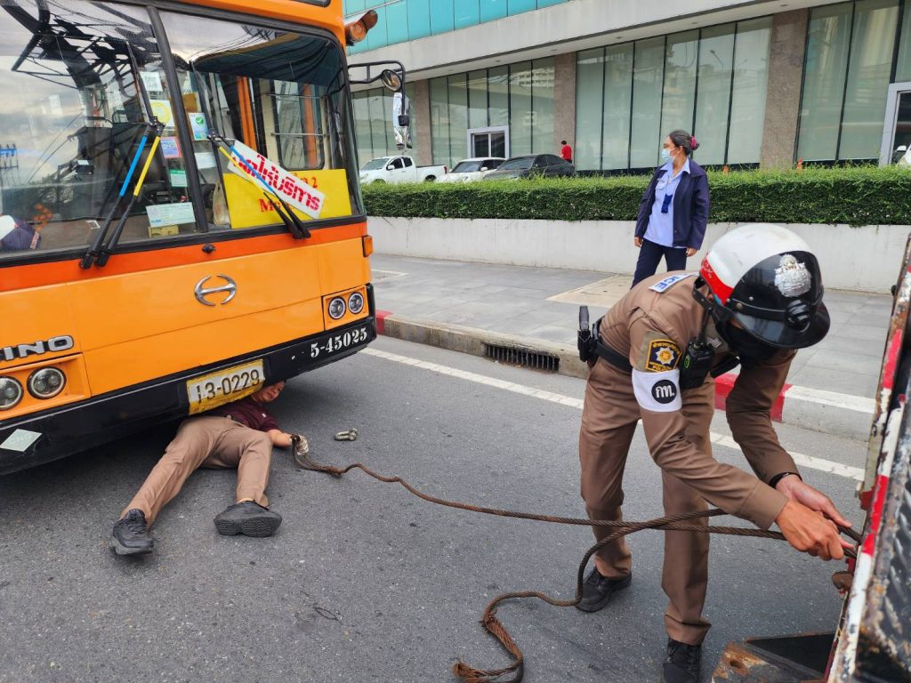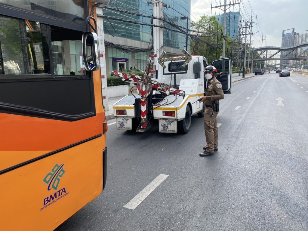 งานจราจร สน.พหลโยธิน ตรวจสอบรถโดยสารประจำทางจอดเสีย พร้อมแจ้งเจ้าหน้าที่รถยกนำพ้นกีดขวางด้วยความรวดเร็ว