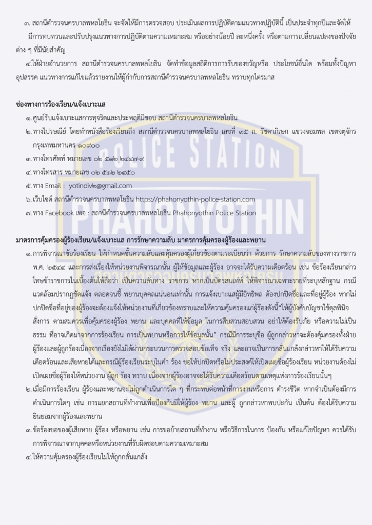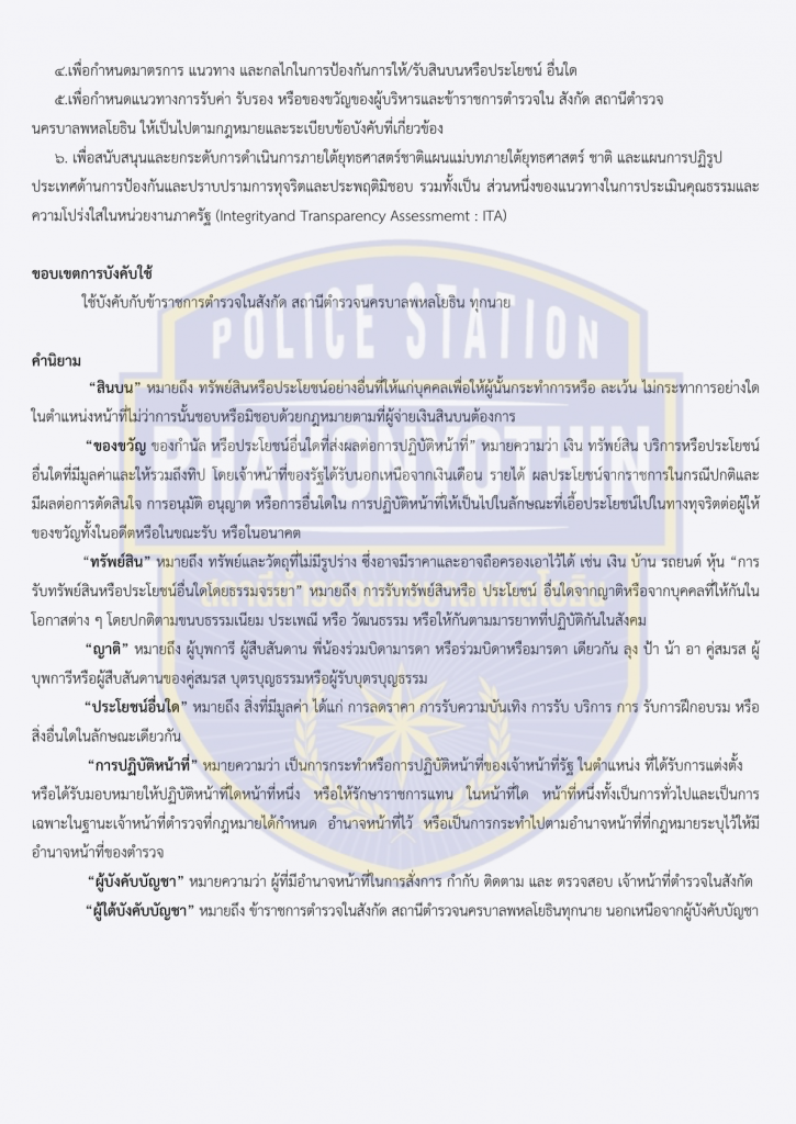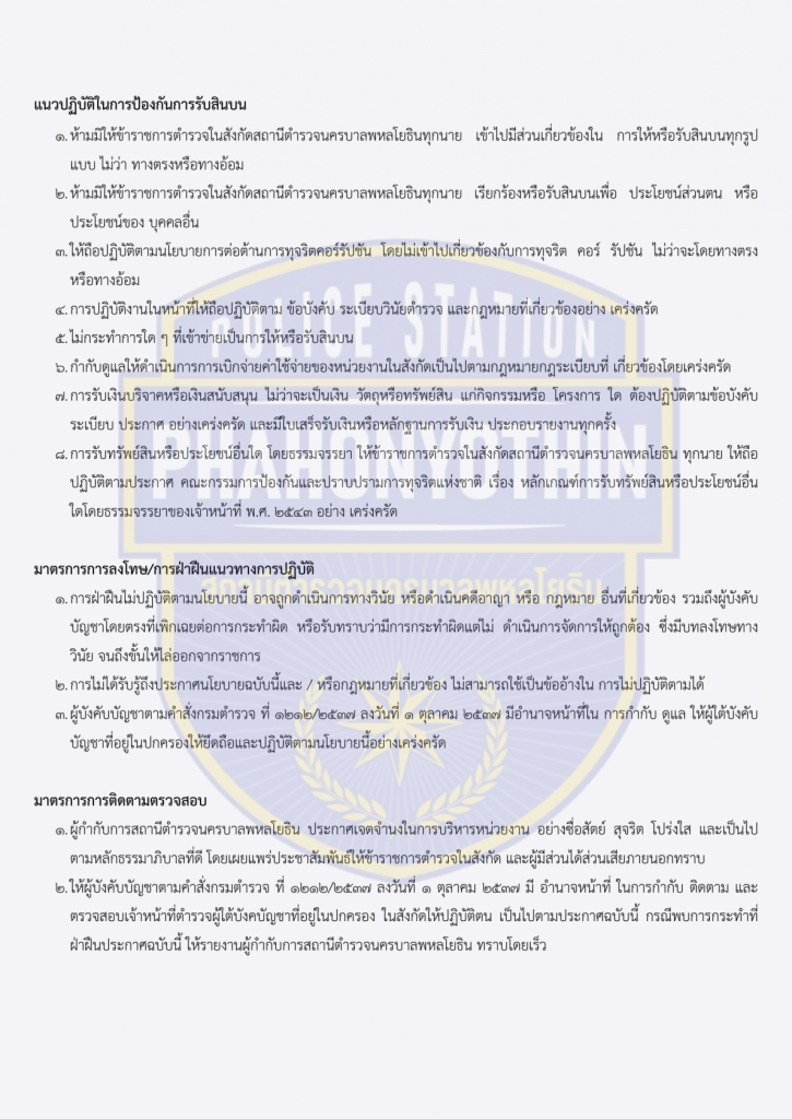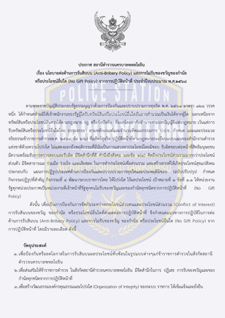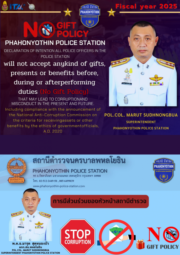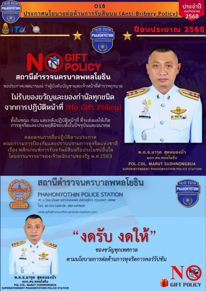 สน.พหลโยธิน ประกาศนโยบายต่อต้านการรับสินบน (Anti-Bribery Policy)