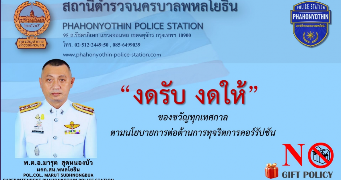 สน.พหลโยธิน ประกาศนโยบายต่อต้านการรับสินบน (Anti-Bribery Policy)