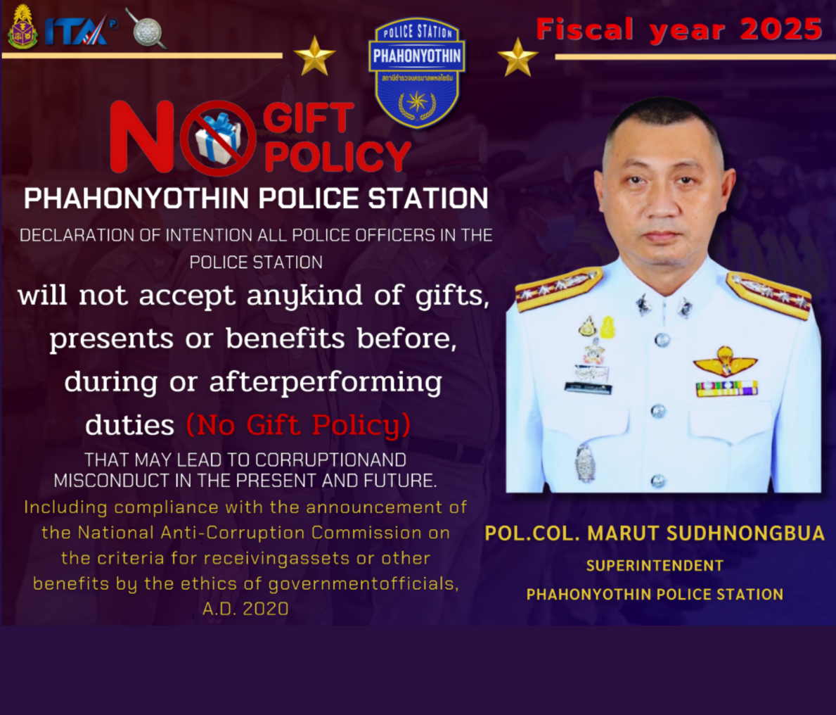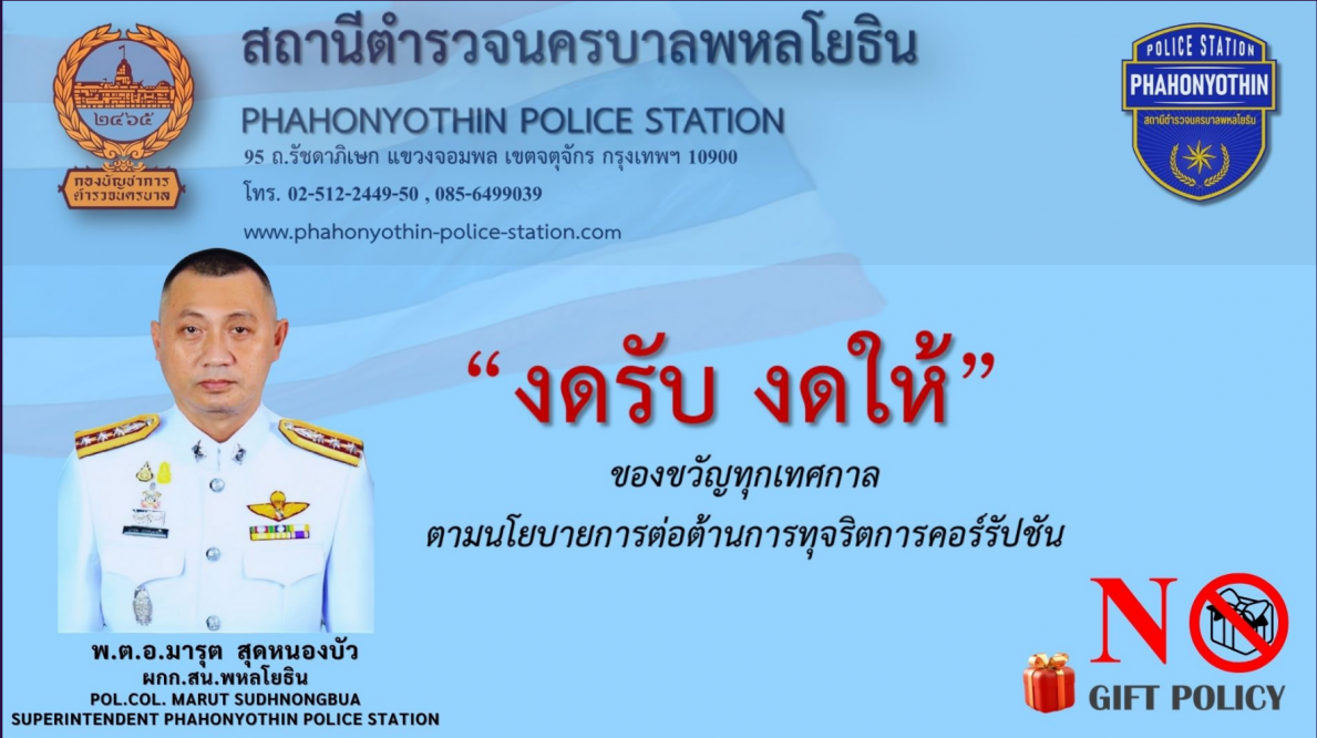 สน.พหลโยธิน ประกาศนโยบายต่อต้านการรับสินบน (Anti-Bribery Policy)